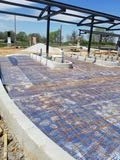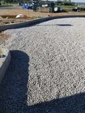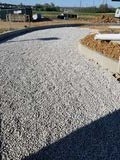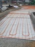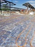 Laborer setting up the pour and grading stone and also placing the mesh